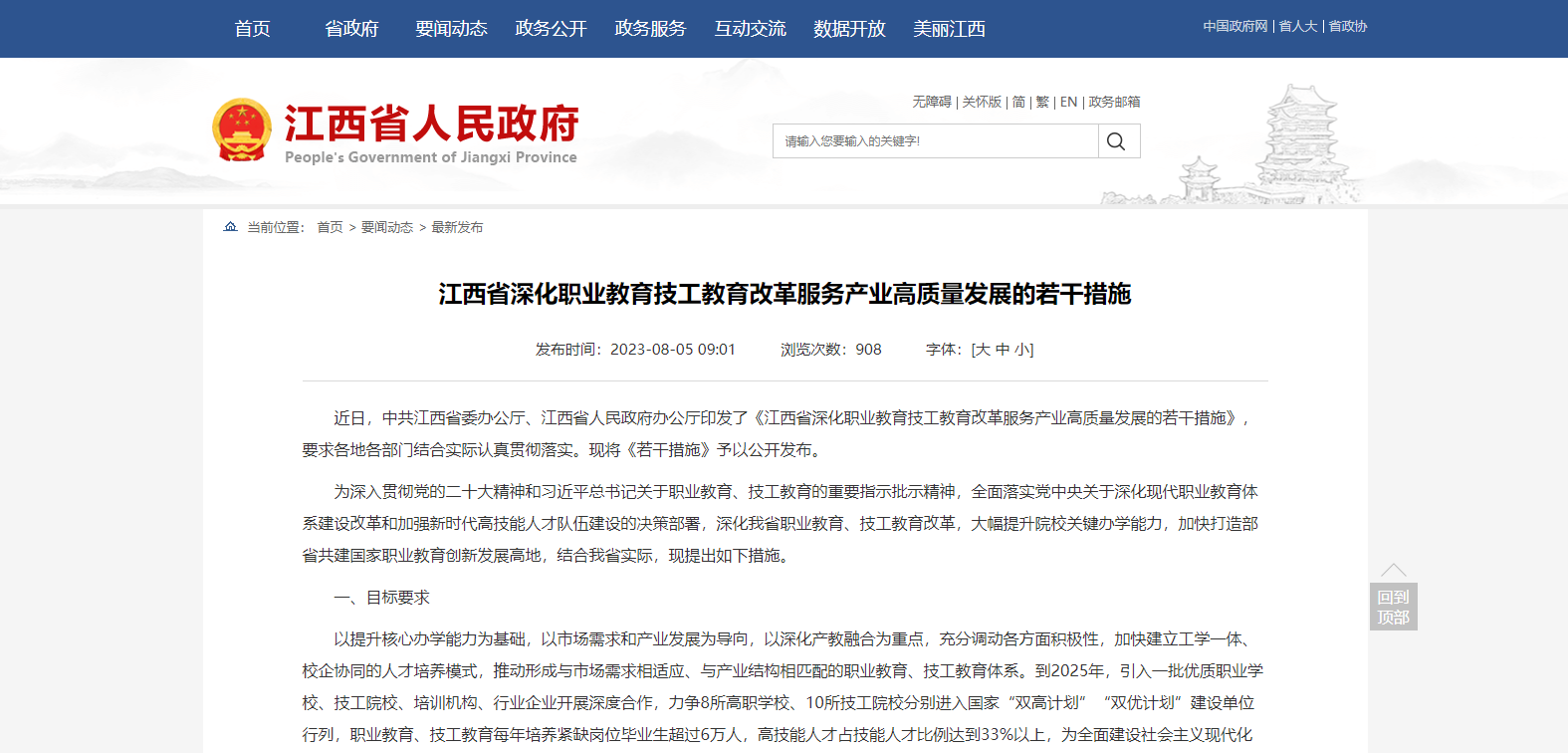 江西省發(fā)布深化職業(yè)教育技工教育改革服務產(chǎn)業(yè)高質(zhì)量發(fā)展的若干措施