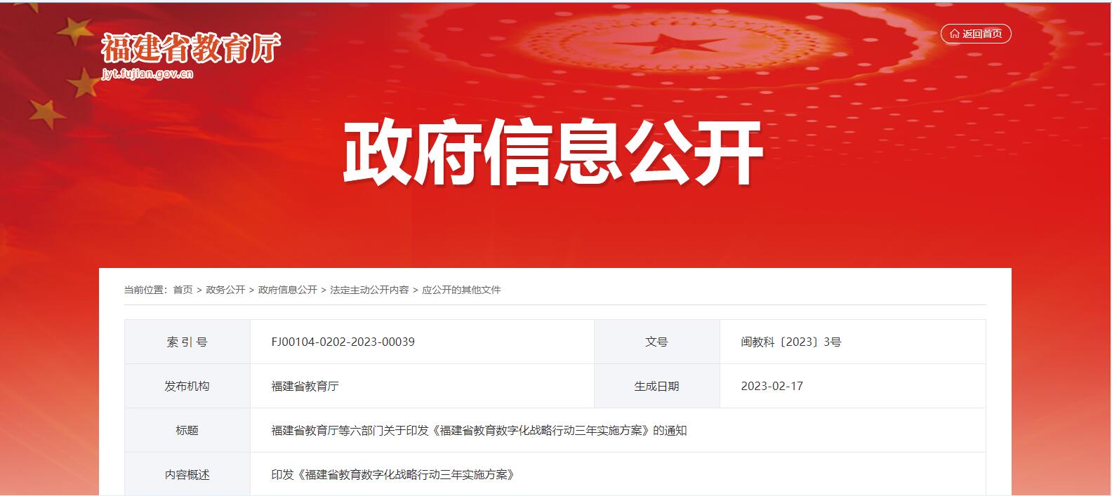 福建省教育廳等六部門關(guān)于印發(fā)《福建省教育數(shù)字化戰(zhàn)略行動(dòng)三年實(shí)施方案》的通知