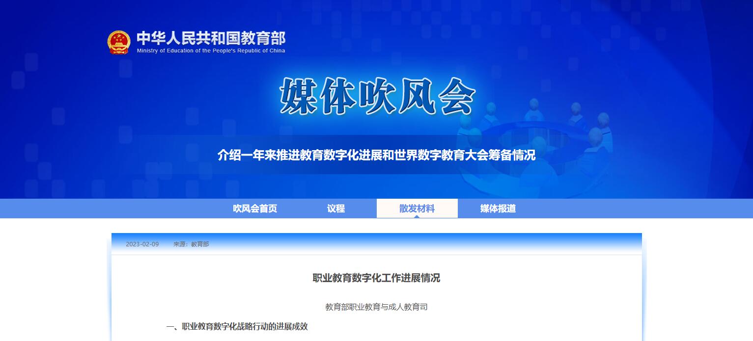 教育部職業(yè)教育與成人教育司:職業(yè)教育數字化工作進展情況