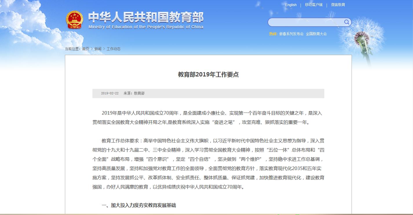 教育部2019年工作要點發(fā)布 職業(yè)教育占4條