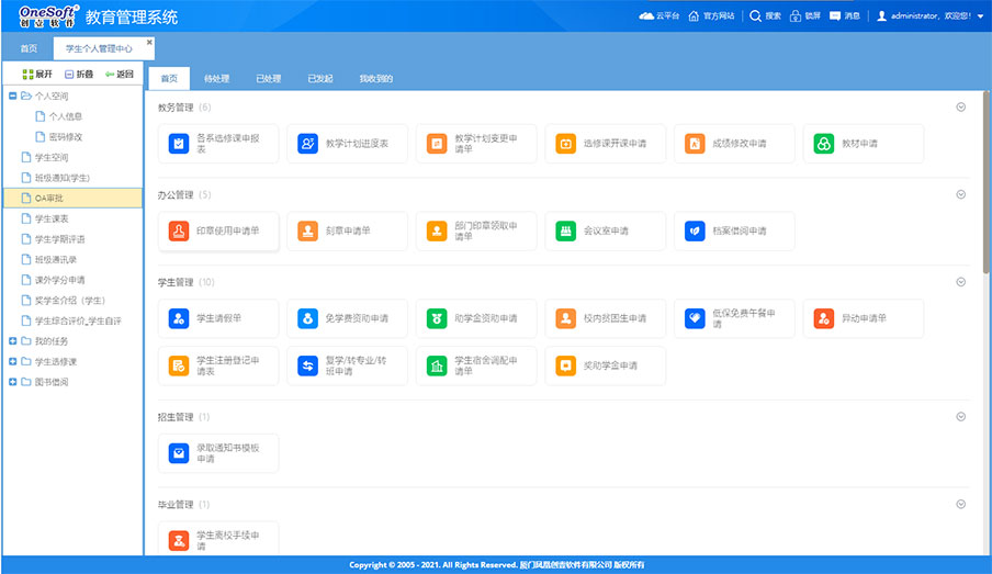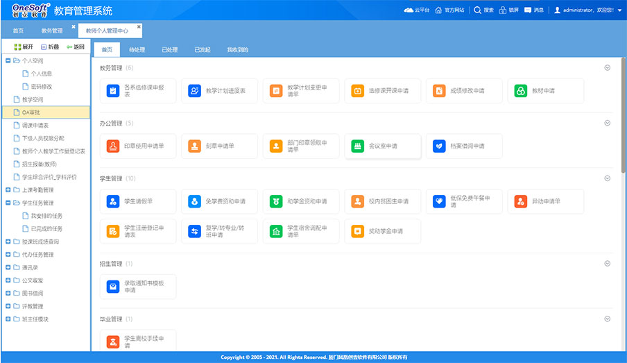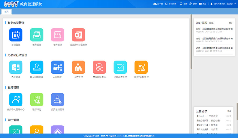 系統(tǒng)由原來的桌面級的管理系統(tǒng)轉(zhuǎn)變?yōu)槊嫦蛴脩籼峁┓?wù)的功能強大的企業(yè)級應(yīng)用平臺。如工作報告、任務(wù)交辦、項目管理、工作任務(wù)管理、管理看板、學校知識庫、檔案管理等這些工具支撐日常工作,為教職工工作增效,為干部決策和管理賦能,可提大提升全員工作效率和學校管理水平。